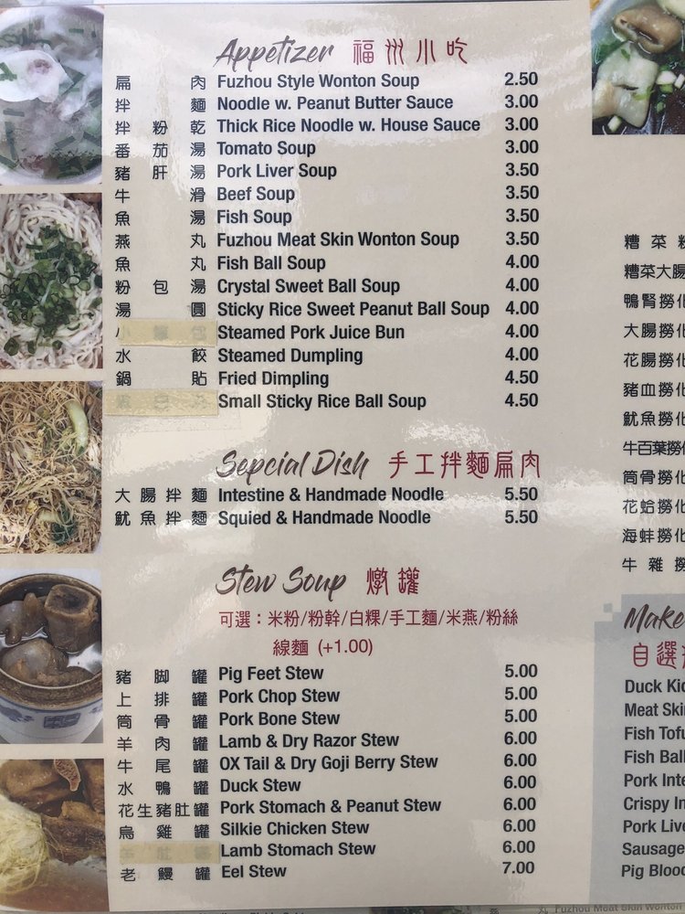 Start with the Fuzhou Style Wonton Soup or the Steamed Dumplings, which promise a burst of flavor with every bite. The Noodle Soups provide a comforting experience, featuring options like Shrimp Mei Fun Soup and Pig Blood Noodle Soup, each crafted with care and quality ingredients.